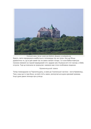 . ,Кожен старовинний замок береже свої легенди Багато з них суперечать історичній науці