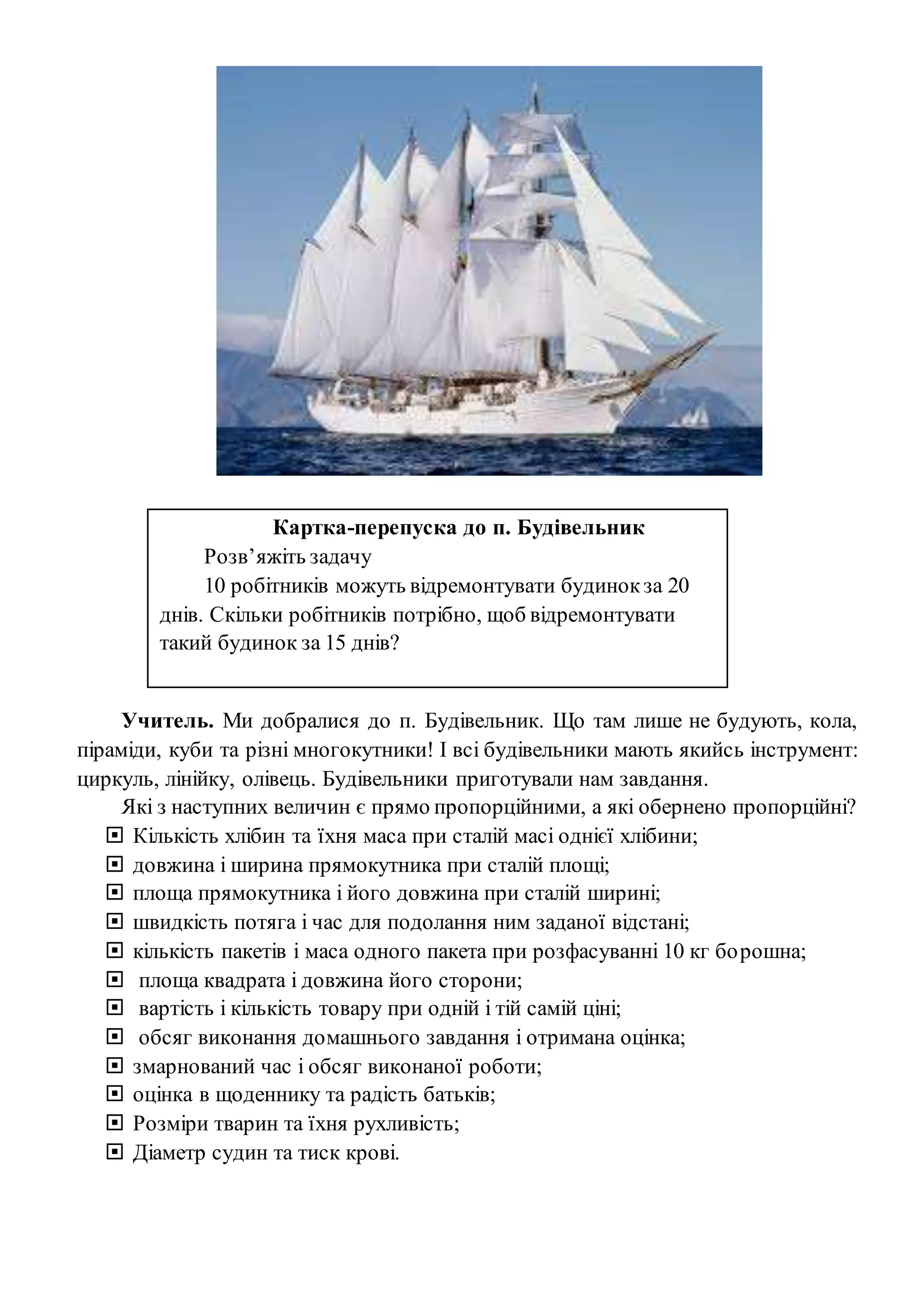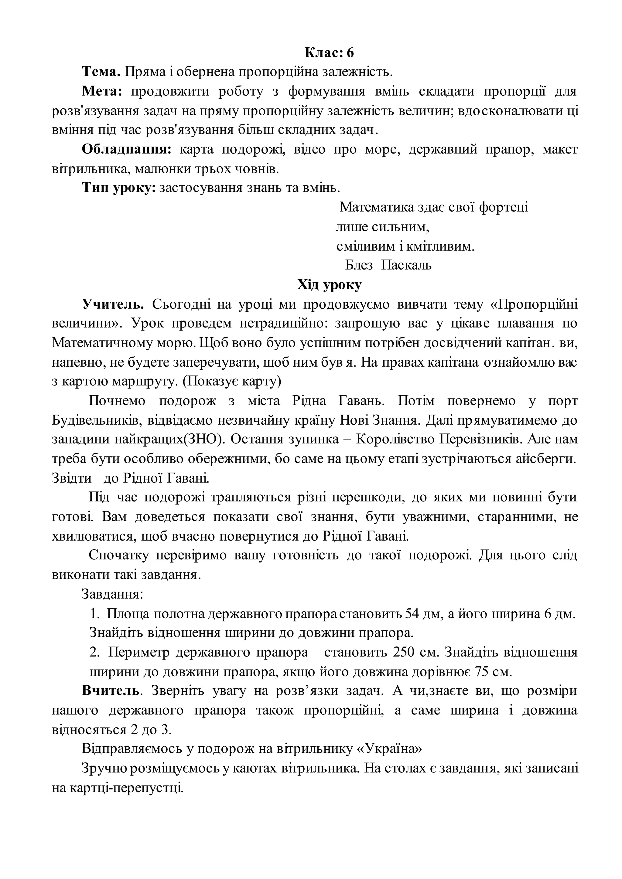 Учитель. Сьогодні на уроці ми продовжуємо вивчати тему «Пропорційні