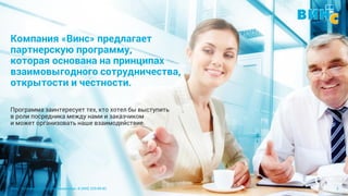 Компания «Винс» предлагает партнерскую программу для посредников, обеспечивая широкий спектр услуг по установке и обслуживанию окон с более чем 18-летним опытом работы. Среди услуг — ремонт, реставрация, сервисное обслуживание и установка различных оконных конструкций, включая индивидуальные решения для дизайнеров и инженеров. Клиенты компании могут рассчитывать на скидки и бонусы, что делает сотрудничество взаимовыгодным.