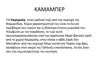 •Το Καμαμπέρ είναιγαλλικό τυρί από την περιοχή της