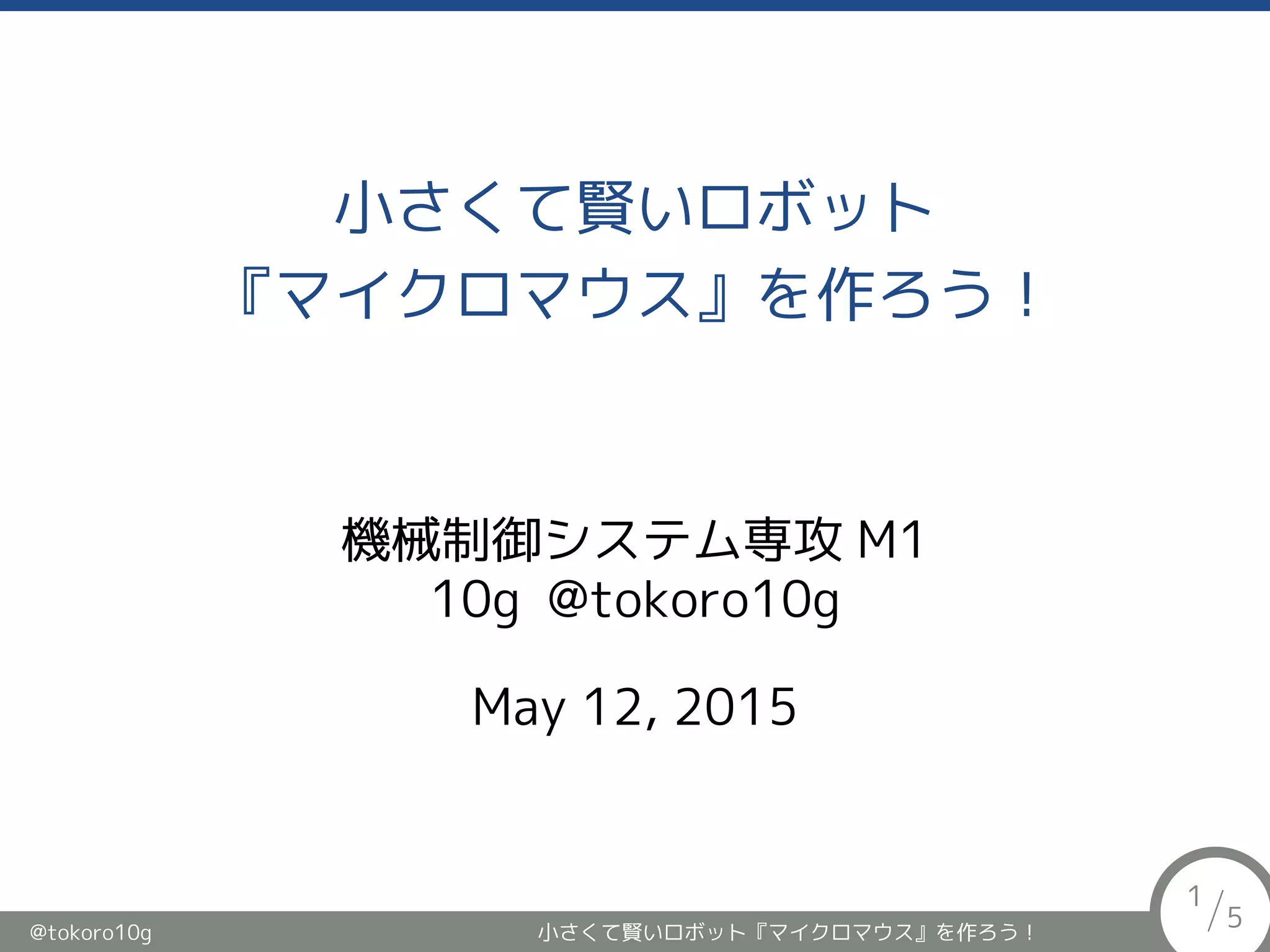9th, 2015 @tokoro10g 小さくて賢いロボット『マイクロマウス』を作ろう! 1 /5