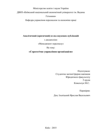 Назва статті: «Удосконалення стратегічного управління організацією»