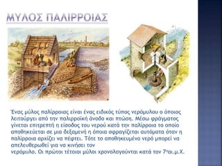 νερόμυλο. Οι πρώτοι τέτοιοι μύλοι χρονολογούνται κατά τον 7οαι.μ.Χ.