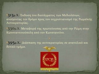 •395μ.Χ. Διάσπαση της αυτοκρατορίας σε ανατολικό και