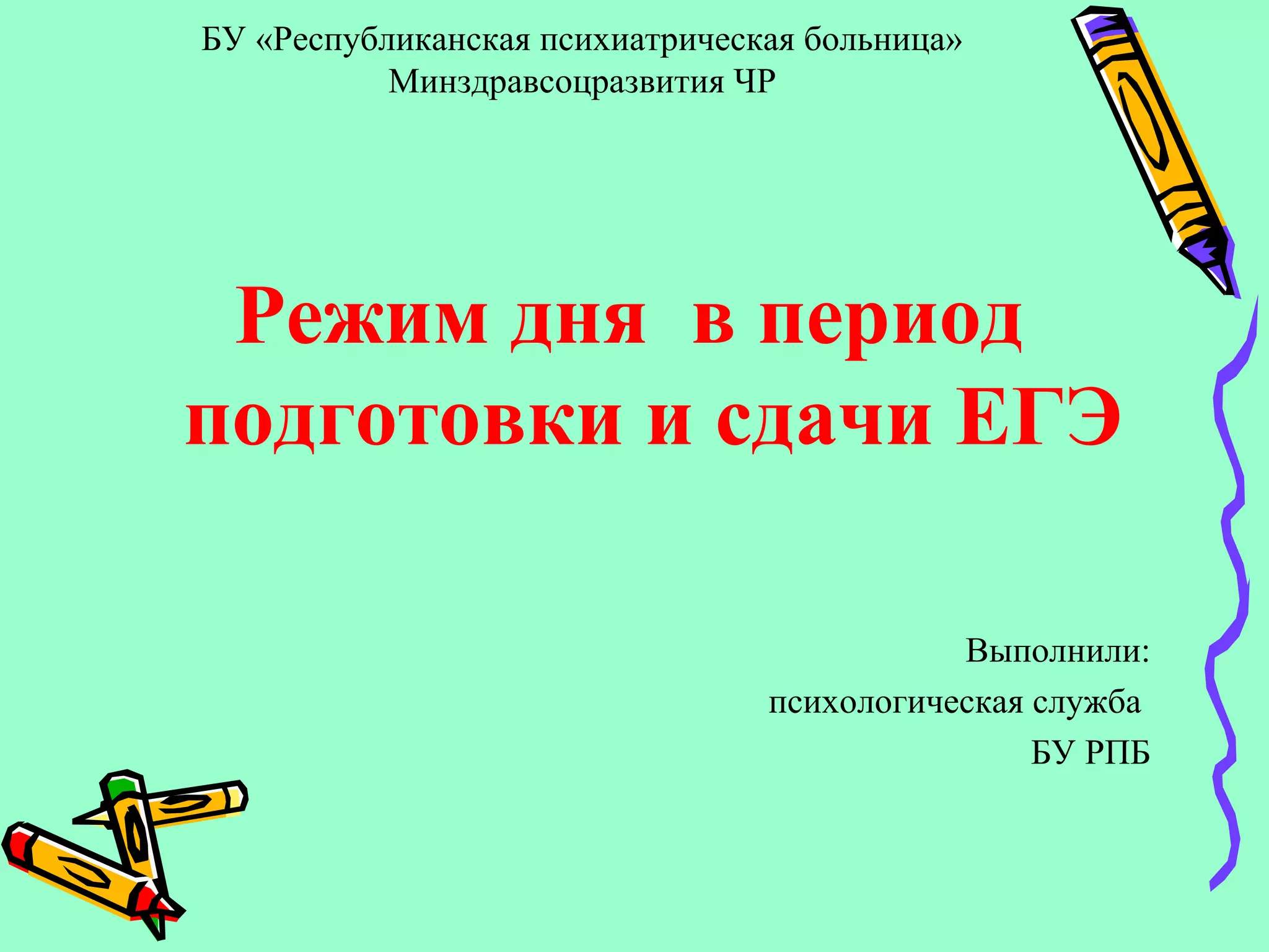 Документ описывает режим дня для подготовки к экзаменам ЕГЭ, акцентируя внимание на важности теоретической и психологической подготовки. Подчеркиваются значимость правильного питания, физической активности и организации времени для снижения стресса и улучшения эмоционального состояния. Также предлагаются практические упражнения для тренировки памяти, внимания и эмоциональной устойчивости во время интенсивных нагрузок.