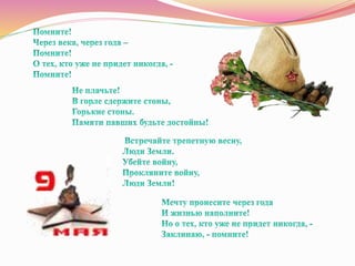 Документ описывает вклад детей в борьбу против фашизма во время Великой Отечественной войны, акцентируя внимание на их мужестве и героизме. Молодые патриоты трудились на фронте, собирали информацию и помогали раненым, многие из них стали героями и были награждены медалями за свои подвиги. Память о детях войны, их судьбах и свершениях продолжает оставаться важной частью истории России.