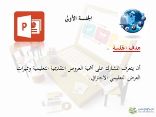 تهدف الوثيقة إلى تعليم المشاركين كيفية استخدام برنامج البوربوينت لإعداد عروض تقديمية تعليمية فعالة. تشمل الأنشطة الموضحة في الجلسات الأربع كيفية دخول البرنامج، استخدام أدواته، تحويل العروض إلى صيغة PDF، والتفاعل مع الطلاب عبر منصات مثل slideshare. تسلط الوثيقة الضوء على أهمية التصميم الجيد والتنظيم في العروض لضمان توصيل المعلومات بشكل فعال.