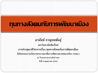 - กระบวนการพัฒนาเมืองอยู่ที่ความขัดแย้งระหว่างกลุ่มทางสังคมต่าง ๆ