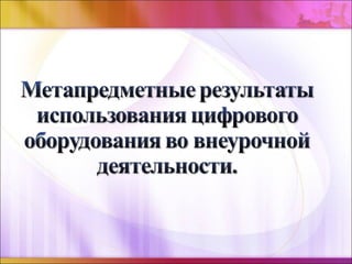 Документ описывает применение цифрового оборудования в образовательных экспериментах, включая исследовательские работы, такие как проектирование динамических сооружений и влияние гравитации на формирование вселенной. Также рассматриваются аспекты самоорганизации и коммуникации в групповой деятельности. В заключение подчеркивается важность информационного обмена в учебном процессе.