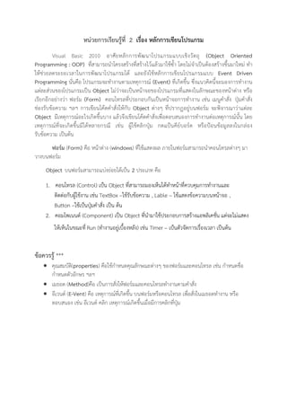 1. Form Name Form1 กาหนดชื่อให้ Form