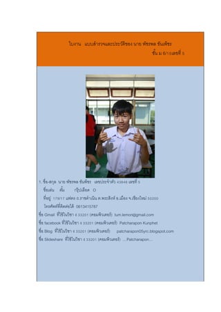 ใบงาน แบบสำรวจและประวัติของ นาย พัชรพงษ์ พจนะโกสีย์ ชั้น ม