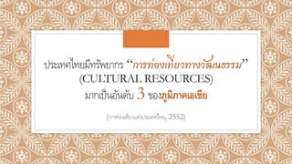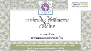 PPT เรื่อง "การท่องเที่ยวเชิงวัฒนธรรมกับวิถีไทย" โดย กรวรรณ สังขกร นักวิจัย (ชำนาญการพิเศษ) สถาบันวิจัยสังคม มหาวิทยาลัยเชียงใหม่