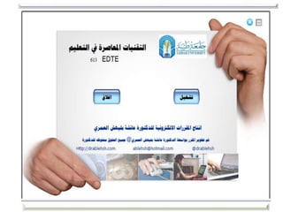 المحاضرة الثامنة تتناول الوسائل التعليمية التقليدية والأجهزة الحديثة المستخدمة في التعليم، مع توضيح أنواعها وأهميتها وتأثيرها على التعلم. تغطي المحاضرة أهداف مختلفة، مثل تعريف الوسائل التعليمية، أنواع الأجهزة ومعايير استخدامها في العملية التعليمية. كما تركز على أهمية التكنولوجيا في تحسين الأداء التعليمي وطرق عرض المحتوى.