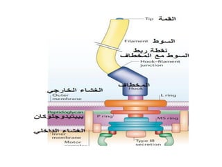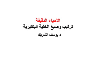 يتناول الوثيقة التركيب الأساسي للخلية البكتيرية وأجزائها المختلفة مثل الغشاء السيتوبلاسي والسيتوبلازم والريبوزومات. كما تناقش خصائص الحركة بواسطة الأسواط وكيفية تصنيف البكتيريا اعتمادًا على الأصباغ المختلفة. الوثيقة تركز أيضًا على تركيبة الخلايا والمكونات الحيوية اللازمة لبقاء الخلايا البكتيرية.