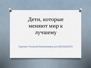 Документ описывает жизненные истории нескольких детей, которые стали символами мужества и изменений в обществе. В нем упоминается Анна Франк, Саманта Смит, Нкоси Джонсон, Райан Уайт, Мала́ла Юсуфза́й и другие, которые боролись за мир, права человека и образование. Каждый из них, несмотря на свои сложные обстоятельства, оставил значимое наследие и стал вдохновением для многих.