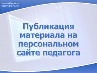 Документ содержит контактную информацию Ярославцева Виктора Леонидовича, учителя информатики из МКОУ СОШ № 7 г. Слободского. Указаны электронная почта и веб-сайт. Повторяющаяся информация представлена в виде ссылок и адресов.