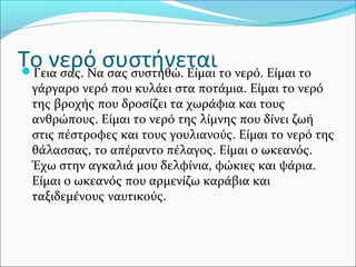 Το νερό συστήνεταιΓειασας. Να σας συστηθώ. Είμαι το νερό. Είμαι το