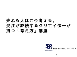 1 株式会社 SGO ソリューションズ 売れる人はこう考える。 受注が継続するクリエイターが 持つ「考え方」講座