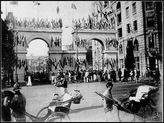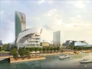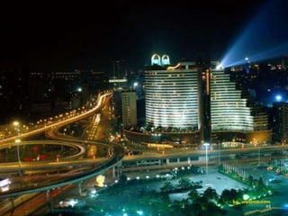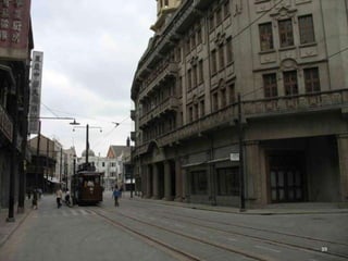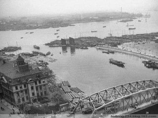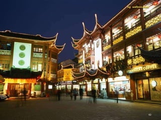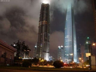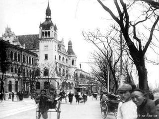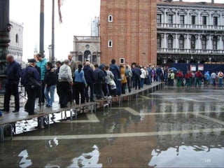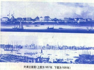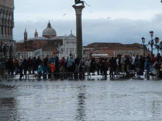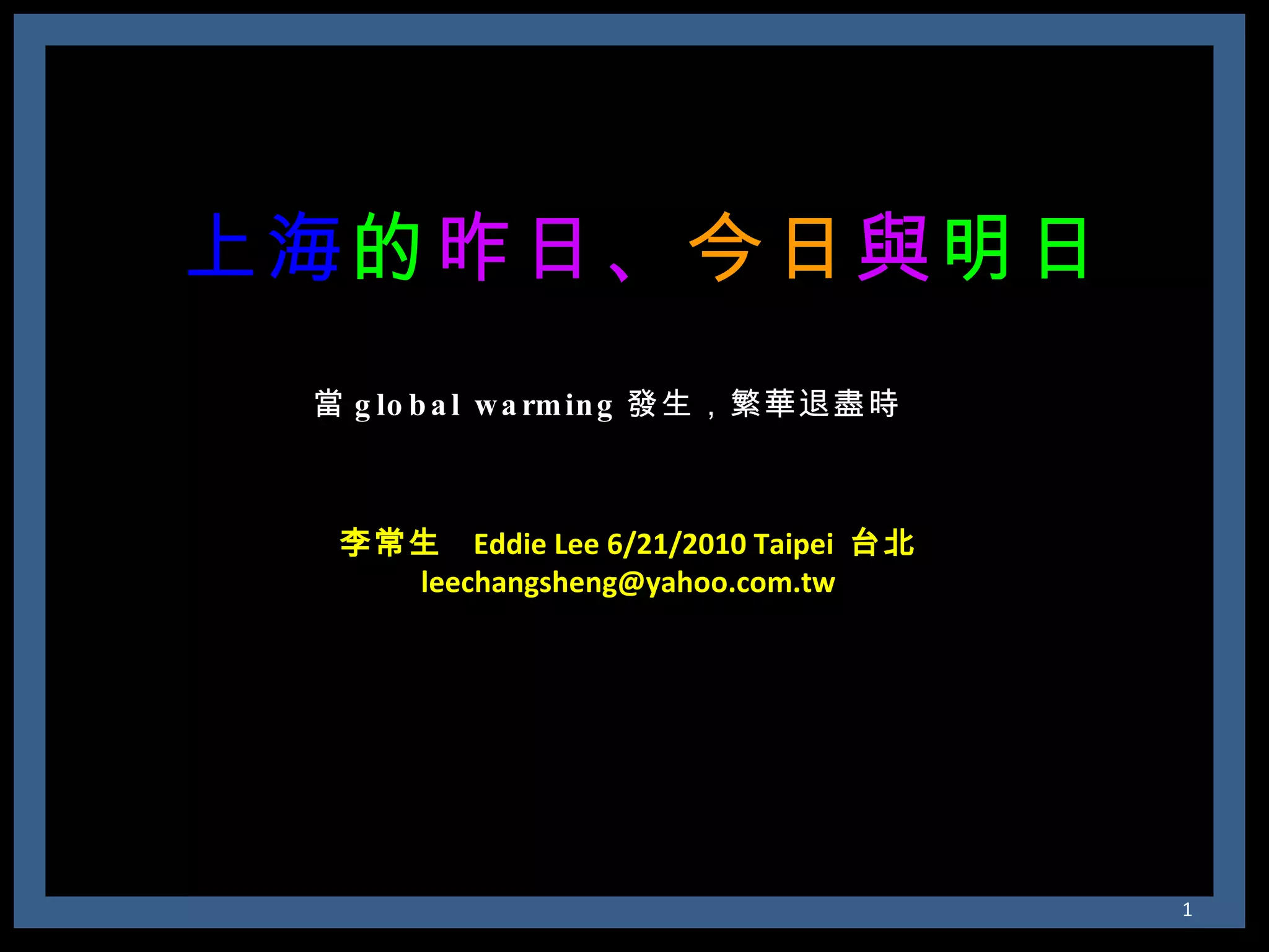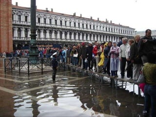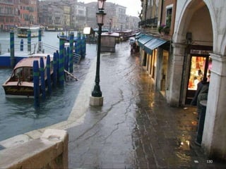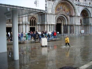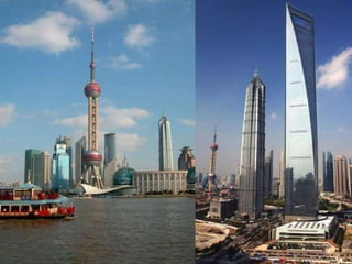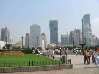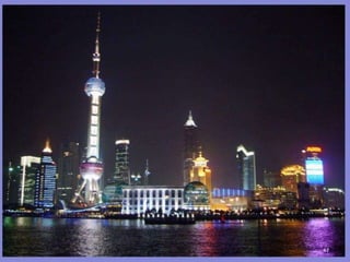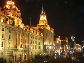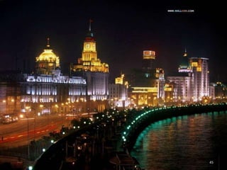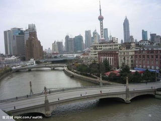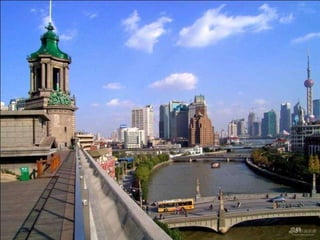 The document discusses the history of Shanghai and how it may be affected by global warming in the future. It describes how Shanghai used to be underwater thousands of years ago and discusses its development over time. It then predicts that within 50-100 years, if global warming continues, Shanghai may be underwater again as sea levels rise, similar to what is already happening in Venice with frequent flooding. The document encourages concern for actions to address global warming.