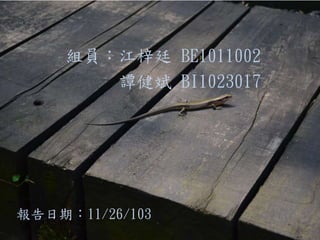 組員:江梓廷 BE1011002 譚健斌 BI1023017 報告日期:11/26/103