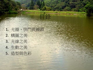 目錄 1. 光圈、快門與鏡頭 2. 構圖之美 3.