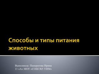 Документ охватывает различные способы питания животных, включая автотрофный, гетеротрофный и миксотрофный типы. Он описывает процессы, участвующие в питании, переваривании и усвоении пищи, а также эволюцию пищеварительных систем у животных. В нем упоминаются примеры организмов и их специализированные структуры для захвата и переработки пищи.