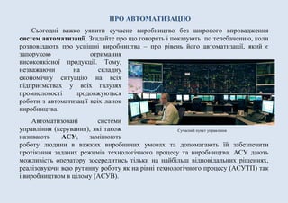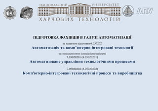 ПІДГОТОВКА ФАХІВЦІВ В ГАЛУЗІ АВТОМАТИЗАЦІЇ за спеціальністю 151 Автоматизація та комп’ютерно-інтегровані технології за спеціалізаціями "Автоматизація та інтелектуальні системи керування" та "Інтегровані автоматизовані системи управління"