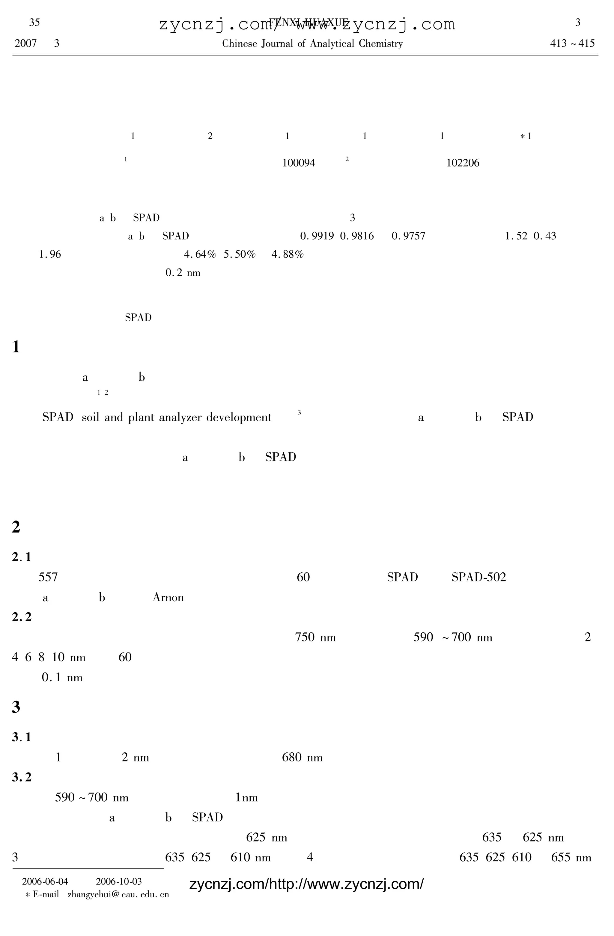 2. The model establishes quantitative analysis methods for soil and plant analyzer development with three wavebands of information.