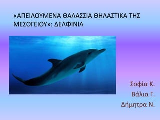 • Τα δελφίνιαείναι θαλάσσια θηλαστικά, που