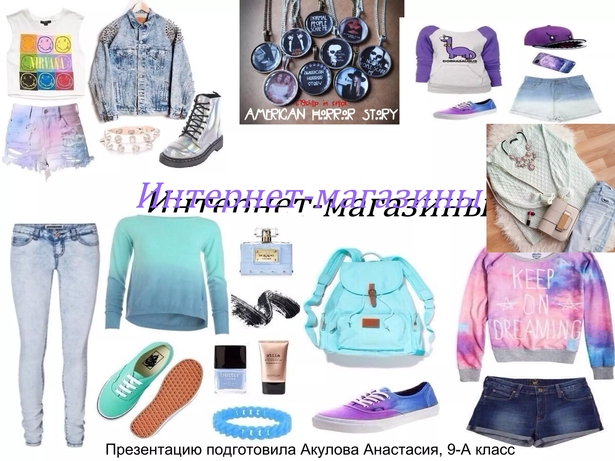 Презентация Акуловой Анастасии о интернет-магазинах обсуждает плюсы и минусы онлайн-шопинга. К положительным аспектам относятся экономия времени и денег, а также широкий выбор товаров, тогда как отрицательные стороны включают невозможность примерки и риск обмана. Документ представляет собой обзор основных преимуществ и недостатков покупок в интернете.