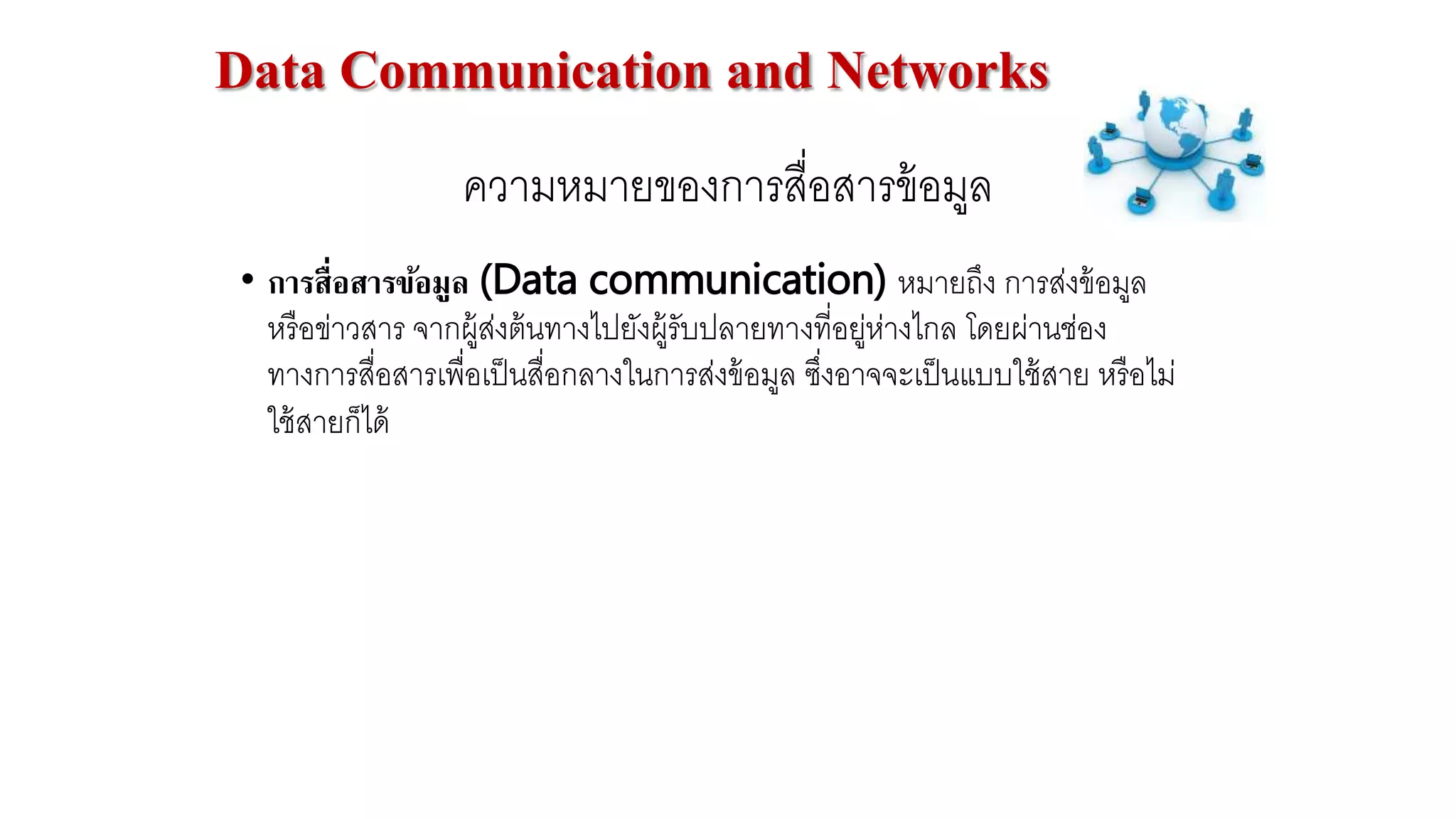 หรือข่าวสาร จากผู้ส่งต้นทางไปยังผู้รับปลายทางที่อยู่ห่างไกล โดยผ่านช่อง