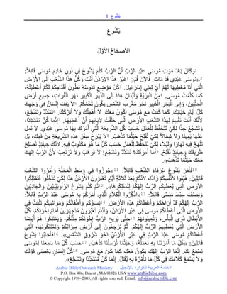 The document is related to Arabic Bible outreach ministry, detailing various aspects of their services and contact information. It emphasizes the importance of spreading the gospel within the Arabic-speaking community. All rights are reserved to the ministry as stated in the copyright notice.