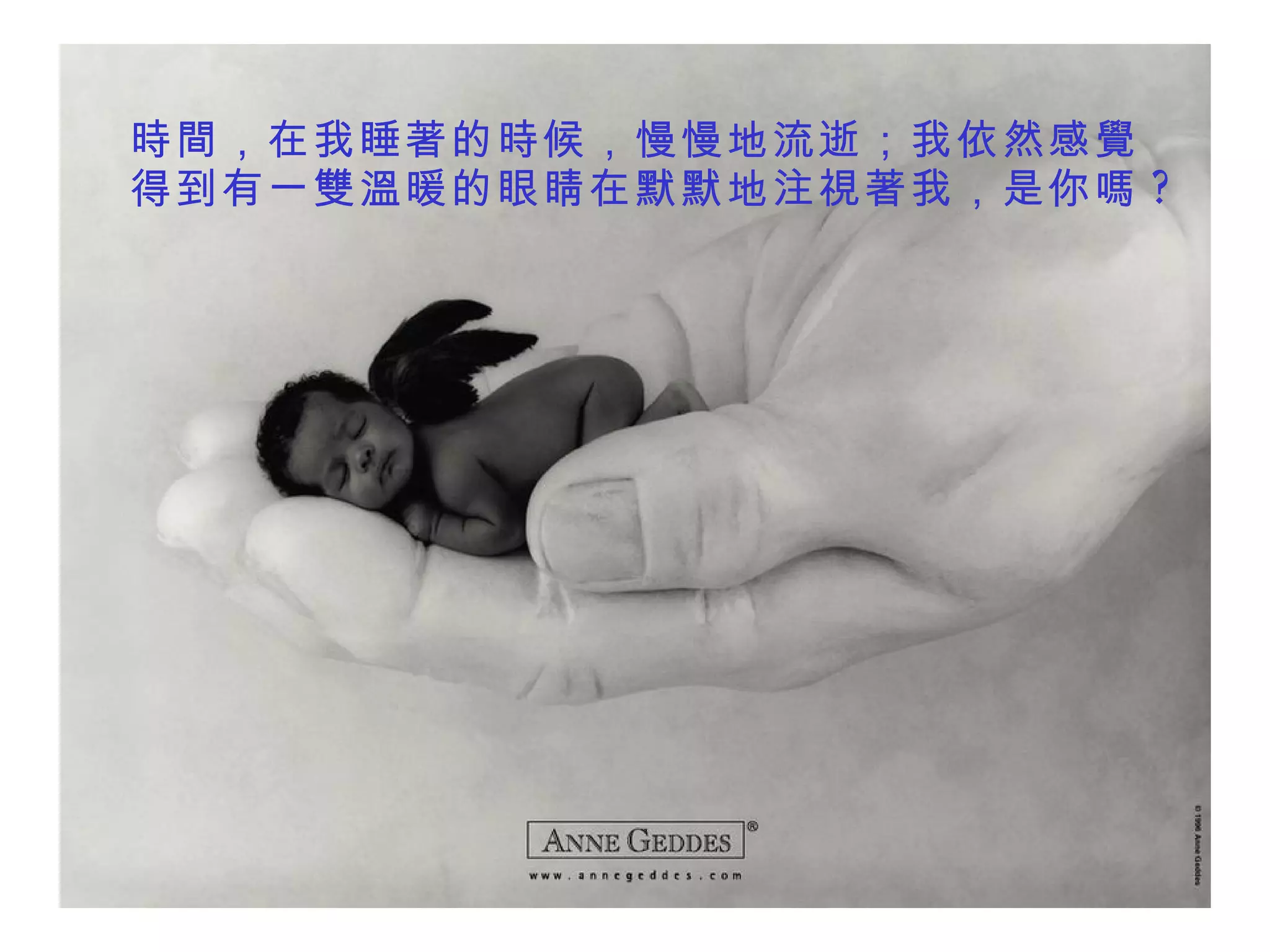,慢慢地流逝;我依然感 覺 得到有一 雙 溫暖 的眼睛在默默地注 視著 我,是你 嗎 ?