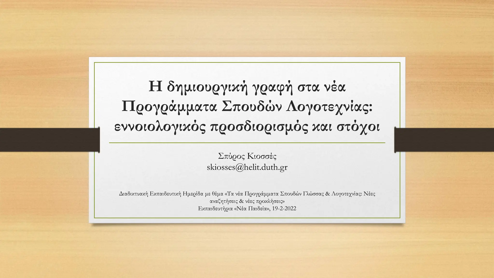 Διαδικτυακή Εκπαιδευτική Ημερίδα με θέμα «Τα νέα Προγράμματα Σπουδών Γλώσσας & Λογοτεχνίας: Νέες