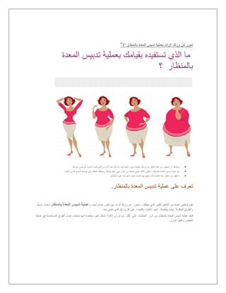 ﻓﺄﺑرزاﻟﻣﻌدة ﺗدﺑﯾسﯾﻌرف ﻣﺎ طرﯾق ﻋن ﺗﺟرى ﻓﮭﻲ اﻟﻌﻠﻣﯾﺔ ھذه ﺑﮭﺎ ﺗﺗﻣﺗﻊ اﻟﺗﻲ اﻟﺳﮭوﻟﺔ ﺑﺎﻟﻣﻧظﺎراﻟﺟراﺣﻲ ﺑﺎﻟﻣﻧظﺎرﯾﻘوم ﺣﯾث ﺑﻌﻣل اﻟﻌﻠﻣﯾﺔ ﻟﻠﻣرﯾض ﯾﺟري اﻟذي اﻟطﺑﯾب4ﺛﻘوبﻋن ﻋﺑﺎرة اﻟﺛﻘوب ھذه ﻣن ﺛﻘب وﻛل اﻟﻣﻌدة ﺟدار ﻓﻲ1ﺳم. ھو اﻟﺛﻘوب ھذه ﻣن اﻟﮭدف اﻣﺎﻛﻣ ﻓﻰ اﻟﺗﺣﻛم ﻓﻲ اﻟﻔرد اﻣﻛﺎﻧﯾﺔﻋن ﺗزﯾد اﻟﺗﻲ اﻻوزان ﻣﻊ اﻟﻌﻠﻣﯾﺔ ھذه وﺗﺳﺗﺧدم ﯾﺗﻧﺎوﻟﮫ اﻟذي اﻟطﻌﺎم وﺣﺟم ﯾﺎت100ﻛﯾﻠو ﺟرام. ﻣﻌﻘدة ﻏﯾر ﺗﻌﺗﺑر اﻟﻌﻠﻣﯾﺔ ﺗﻠك أن ﻏﯾراﻻﺷﯾﺎء ﻋﻠﻰ ﺗؤﺛر وﻻ اﻟﺗﻐذﯾﺔ ﺳوء ﻣﺛل ﻣﺷﺎﻛل ﺗﺳﺑب وﻻ اﻟﻣﻣﯾزة وﻧﺗﺎﺋﺟﮭﺎ ﻋﻣﻠﮭﺎ ﻓﻲ ﺑﺎﻟﺳﮭوﻟﺔ ﺗﺗﻣﺗﻊ ﻻﻧﮭﺎ اطﻼﻗﺎ ﻋﻠﻰ ﺗﺄﺛﯾرھﺎ ﻣﺛل اﻻﺧرىاﻟﻣﻌﺎدن ﻣﺛل اﻟﻐذاﺋﯾﺔ اﻟﻣواد اﻣﺗﺻﺎص ﻋﻠﻰ اﻟﻘدرةاﻟﺟﺳم ﻟﺑﻧﺎء اﻟﮭﺎﻣﺔ اﻟﻣواد ھذه ﻣن وﻏﯾرھﺎ واﻟﻔﯾﺗﺎﻣﯾﻧﺎت. ﻓﻲ اﻟطﺑﯾب ﯾﻘوم اﯾﺿﺎﺑﺎﻟﻣﻧظﺎر اﻟﻣﻌدة ﺗدﺑﯾس ﻋﻣﻠﯾﺔﺣﺗﻰ وذﻟك ﺑﺎﻟﺟوع اﻟﺷﻌور ﻋن اﻟﻣﺳﺋول ﺑﺎﻟﮭرﻣون ﯾﻌرف ﺟزء اﺳﺗﺋﺻﺎل ﺑﻌﻣﻠﯾﺔﯾﺗﻣﻛن ﻗﻠﯾﻠﺔ ﻛﻣﯾﺎت ﺗﻧﺎوﻟﮫ ﻣن اﻟﻣرﯾضﻛﺛﯾرا ﯾزداد وزﻧﮫ ﺗﺟﻌل ﻛﺎﻧت اﻟﺗﻲ اﻟﻛﺑﯾرة اﻟﻛﻣﯾﺎت ﯾﺗﻧﺎول وﻻ. اﺗﺻﻠوا ﺑﺎﻟﻣﻧظﺎر اﻟﻣﻌدة ﺗدﺑﯾس ﻋﻣﻠﯾﺔ ﻋن اﻟﻣﻌﻠوﻣﺎت اﺑرز ھﻲ ھذهﺑــد/ﻟﻛم ﯾﻘوم أﺟل ﻣن أﺣﻣد ھﺷﺎمﺑﺄﻓﺿلاﻟﺳﻣﻧﺔ ﺟراﺣﺎت. اﻟﻣﺻدر:-h p://be4em.com/DrHishamAhmed/%D8%B9%D9%85%D9%84%D9%8A%D8%A9 -AF%D8%A8%D9%8A%D8%B3%D8%AA%D8% -%D8%A7%D9%84%D9%85%D8%B9%D8%AF%D8%A9 %D8%A8%D8%A7%D9%84%D9%85%D9%86%D8%B8%D8%A7%D8%B1