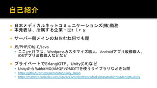 プライベートでErlang/OTP、Unity(C#)など