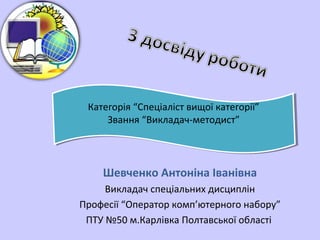 ПТУ № 27 м.Лохвиця, Шевченко Антоніна Іванівна ПТУ № 50 м. Карлівка