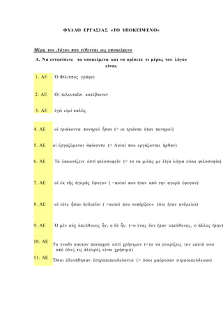 Γ. α) Μπορείτε να βρείτε τα υποκείμενα των παρακάτω