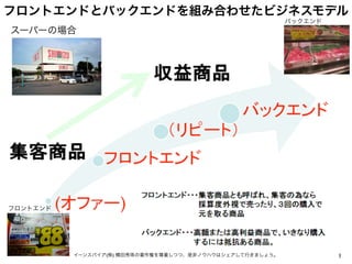 フロントエンドとバックエンドを組み合わせたビジネスモデル 1イーンスパイア(株) 横田秀珠の著作権を尊重しつつ、是非ノウハウはシェアして行きましょう。 スーパーの場合 フロントエンド バックエンド