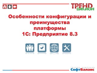 Документ описывает функциональные возможности платформы 1С: Предприятие 8.3, включая управление закупками, ассортиментом и финансовым учетом для розничных предприятий. Он также подчеркивает особенности учета для продовольственной и непродовольственной розницы, а также включает инструменты аналитики и планирования. Платформа поддерживает многопользовательский режим и мобильные устройства, предоставляя настраиваемый интерфейс для пользователей.