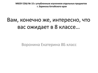 Документ описывает увлекательные темы, которые ожидают учащихся в 8 классе на уроках биологии, подчеркивая, что учебник предоставляет интересную и доступную информацию. Особое внимание уделяется практическим заданиям и моделям, которые помогают закрепить знания. Автор делится своим интересом к изучению работы головного мозга и иллюзиям, обсуждаемым на занятиях.