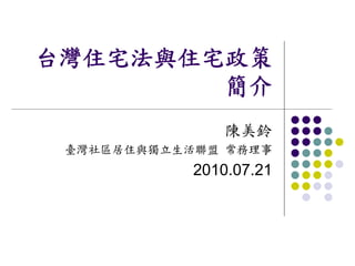 第一章 總則 立法旨意 使全體國民居住於適宜之住宅且享有尊嚴之 居住環境 健全住宅市場