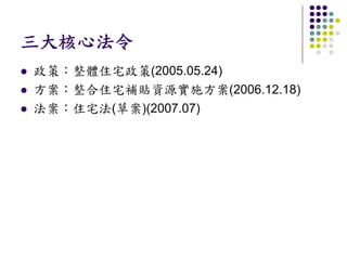 整合住宅補貼實施方案 2006.12.18經建會通過 年度住宅計劃 家庭所得