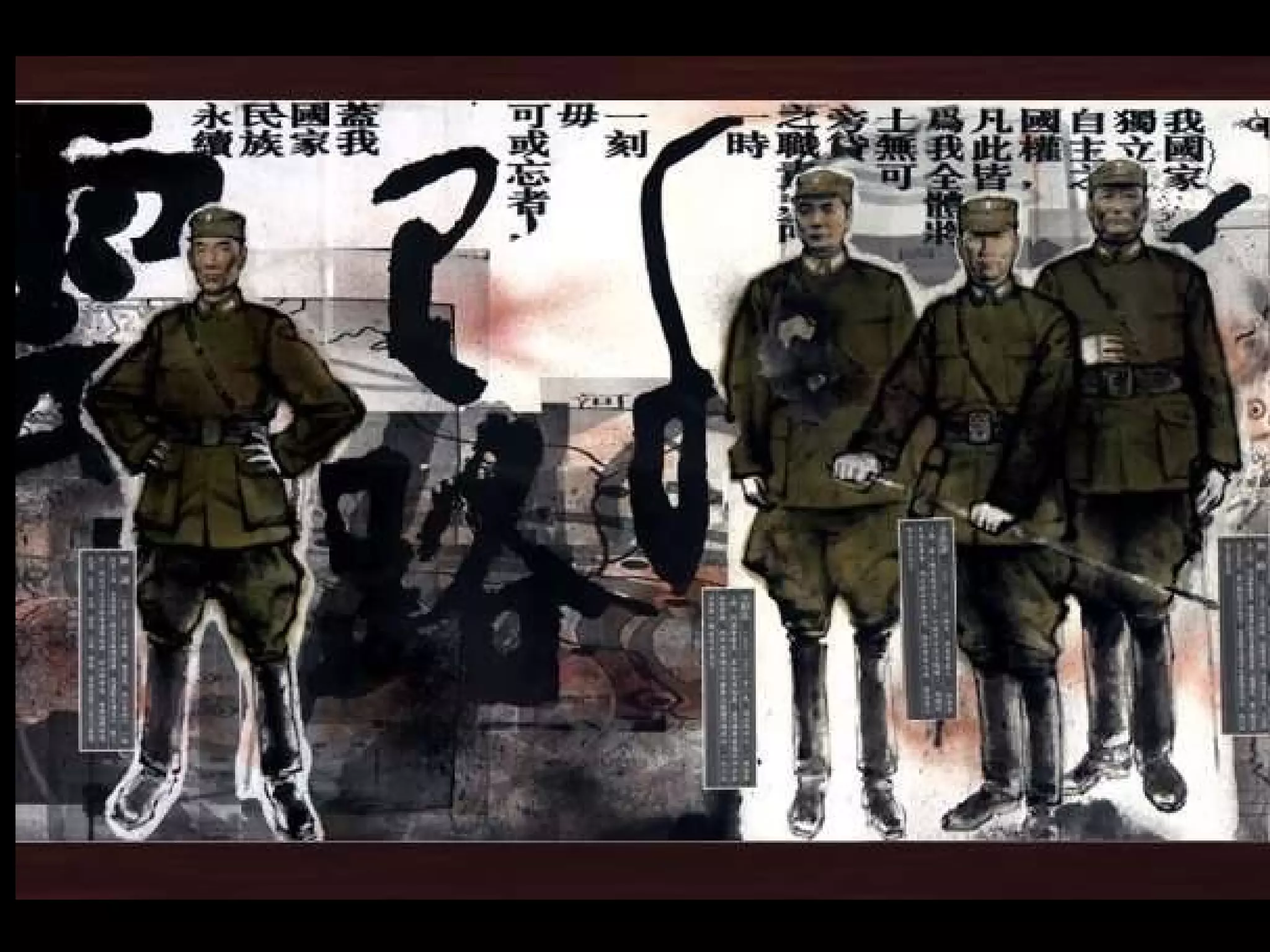 1. 淞滬會戰 1937 年 8 月 13 日 ~11 月 11 日 參戰的國民黨主要將領: 馮玉祥 / 顧祝同 / 陳誠 / 張治中 八一三淞滬會戰中日雙方投入了將近 100 萬的兵力,這次戰役迫使日軍三易主帥。戰前日本曾囂張的說,三個月可以滅亡中國,結果光在上海戰場就打了三個月。雖然日本取得了勝利,但是也因此付出了慘重的代價,此戰日軍傷亡 5 萬餘人。中國軍民浴血苦戰,粉碎了日本「三個月滅亡中國」的狂妄計劃 ; 並爭取了時間,從上海等地遷出大批廠礦機器及戰略物資,為堅持長期抗戰起了重大作用。 - 31.