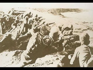 湖南「常德」一役, 74 軍57 師的師長最後一封 電報,寫道: 「職率副師長、師附、政 治部主任、參謀部主任死 守中央銀行,各團長劃分 區域,扼守一屋,作最後 抵抗,誓死為止。並祝勝 利, 74 軍萬歲!」 這一師總共八千名官 兵全部陣亡。 - 6.