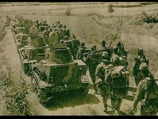 22. 湘西會戰 1945 年 4 月 ~6 月 參戰的國民黨主要將領 : 王耀武 / 施中誠 / 胡璉 / 李天霞 / 廖耀湘 / 韓璇 1945 年 4 月至 6 月的湘西雪峰會戰,是國軍給日軍最嚴厲的打擊之一,也是中日戰爭的一次攤牌作戰 。此戰役直接給日本政府敲 響 了喪鐘。 - 79.
