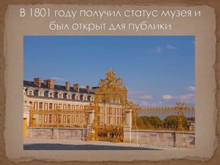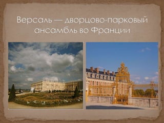 Версальский дворец, возведенный под руководством Людовика XIV, стал символом абсолютизма и эталоном европейских загородных резиденций с конца XVII века. Строительство дворца продолжалось до 1710 года и обошлось в колоссальные суммы, объем затрат на которые приравнен к современным 259,56 миллиардам евро. Сегодня Версаль является объектом Всемирного наследия ЮНЕСКО и значимой частью французской и европейской истории, неоднократно упоминаемой в контексте политических событий.