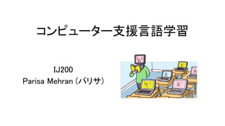 わたしはIJ200クラスのパリサです。よろしくお願いします。今日(きょう)は、わたしの専門(せんもん)のコンピューター支援(しえん)言語(げんご)学習(がくしゅう)について発表したいと思います。