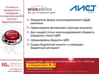 Документ описывает процесс выбора и внедрения автоматизированной системы бюджетирования (АСБ) с акцентом на сотрудничество с компанией '1С'. Основные цели включают повышение точности планирования, производительности и бюджетной дисциплины. Программа также включает критерии выбора АСБ, формирование рабочей группы и этапы внедрения.