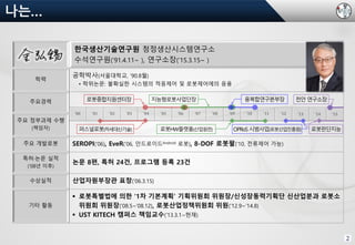 주요 개발로봇 SEROPI(’06), EveR(’06, 안드로이드Android 로봇), 8-DOF 로봇팔(’10, 전류제어 가능)